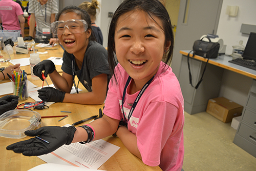 What better way to get a bunch of middle school girls excited about Materials Science and Engineering than to let them explore color and making things pretty? That’s exactly what Mid-GLAM, named after its sister camp GLAM (Girls Learn About Materials) did by exposing them to different hands-on activities and design challenges.
