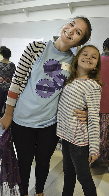 Twenty-six 4th–6th grade girls and their mothers (plus one dad) visited campus this past Saturday (November 7th, 2015) as guests of SWE (the Society of Women Engineers) to participate in the group's fall outreach event, Mommy, Me, and SWE. The goal of the dozens of female engineering students who participated in the event was to pique the girls' interest in engineering and show them that, like their "big sisters," they too have what it takes to become engineers.