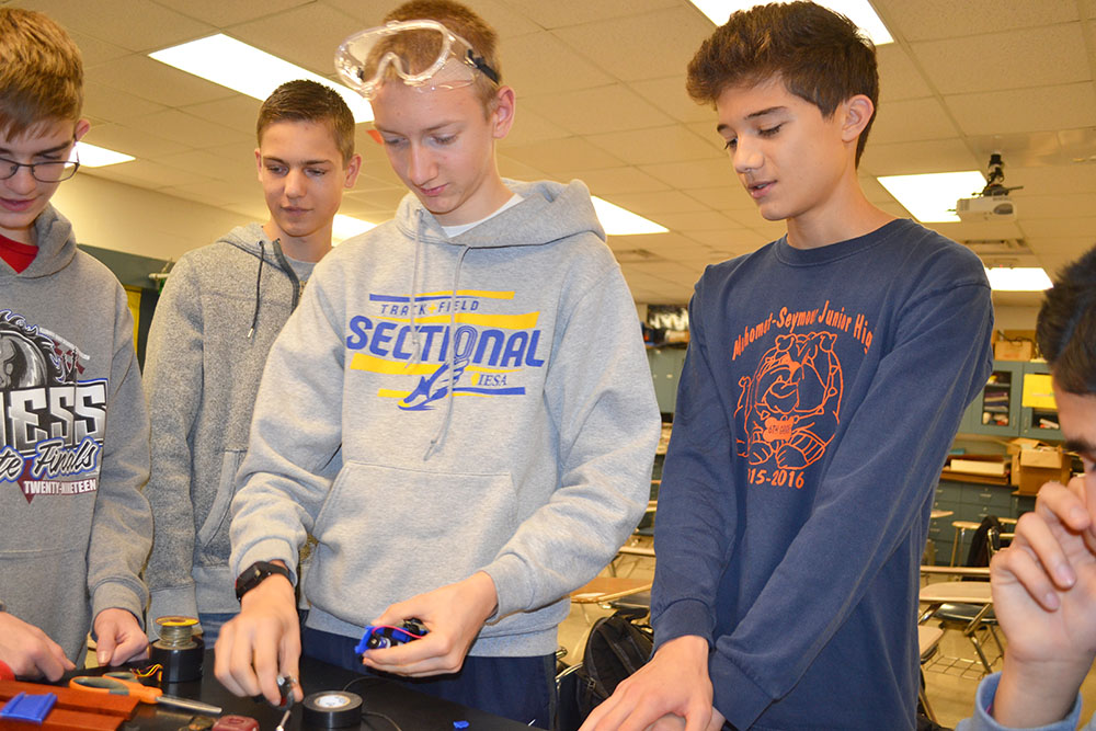What’s something that teenagers might find so exciting that they’d roust themselves out of bed early on a Monday morning in order to show up at school by 7:15 AM? STEM! To be specific, the Mahomet-Seymour High School (MSHS) STEM Club, which has met every Monday morning since it was begun in late August, exposing between 15–25 young people to STEM hands-on activities and potential STEM careers each week.