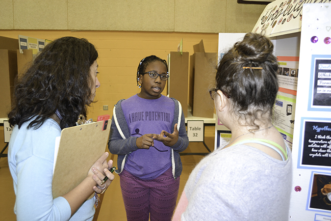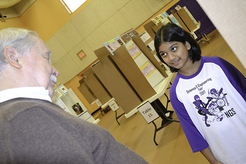 A fifth grader, Sophia, whose research was on, “Do electronics affect sleep?” reports that her favorite part of the fair is when her poster is finally finished! “I really like the satisfaction of when you’re done, because it’s a lot of hard work. And then when you’re finally done, you get to relax. So the board looks really nice when you’re done, and that’s my favorite part.”