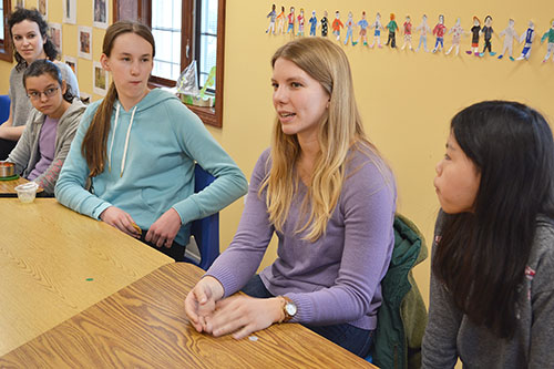 The goal of the club, which began in January, is to provide a relaxed environment where girls can chat with women in different fields of science. Instead of a formal presentation or something more focused, like a hands-on activity, the idea is for the girls to hear about how these women got into their expertise, what their research is or what their day looks like, then ask any questions they might have. Though the club started out with only four girls, excitement about the club quickly spread via word of mouth. Now eleven 6th through 8th grade girls are currently participating.