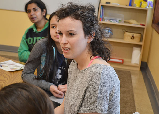 While a lot of the presenters made their career choices quite a while ago, Nelson also wanted to bring in some younger women still in the throes of decision making. She wanted the girls to meet women “still in the process of discovering where they're going to go, and what that feels like, and how they ended up where they are. So she scheduled some women from the MCBees, a Molecular and Cellular Biology Graduate Student Association, who not only shared their current research, what being an MCB graduate student is like, and their career plans, but also their path into science since childhood.