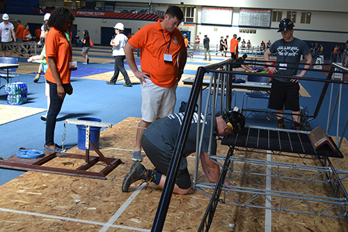 The bridges were assembled twice, with the first time being on Friday afternoon, May 25, 2018 on the Bardeen quad, where the teams explained their process in reaching the end-product. The judges walked among the displays and gave points based on the design's aesthetics and the poster board presentations brought by the competing teams. The second time was on Saturday, May 26th, when the teams started early in the morning and set up to present depending on a preset competition order with assigned time slots.
