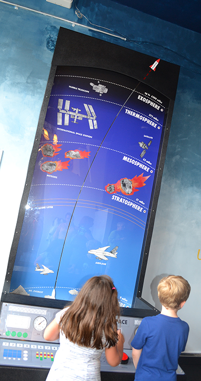 Brauer emphasizes that this is just the first stage of the Astronomy exhibit, and that the museum is going to continue to add to it. For instance, a financial exhibit is in the works where a visitor can step on a scale, find out how much they weigh, then figure out what it's going to cost to get them into space. There will also be a control center, and constellations mounted from the ceiling.