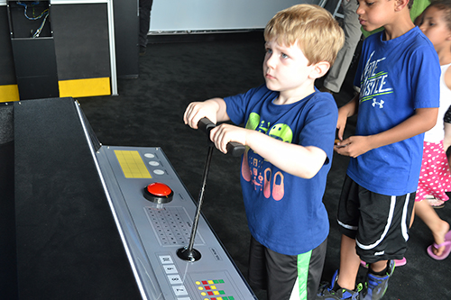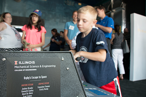 Kids who dream of exploring "a galaxy far, far away," are intrigued with “launching” rockets, or who long to do astronaut stuff like mining asteroid rocks or climbing into a lunar lander, might want to visit the Orpheum Children’s Science Museum’s new Astronomy Kids' Corner. With some help from Busey Bank and a number of Mechanical Science and Engineering (MechSE) seniors who designed two space-related exhibits, the Orpheum in downtown Champaign launched the first stage of its new astronomy exhibit at a grand opening on Thursday, June 7th. The exhibit is part of Executive Director Doug Brauer’s efforts to expand the museum’s role as an educational resource for the community.
