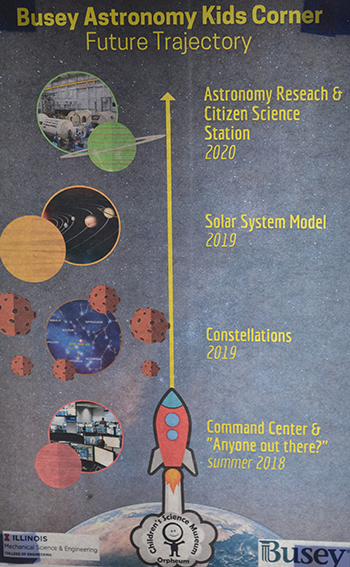 The other partner helping with the Astronomy Kids’ Corner was the University of Illinois’ Mechanical Science and Engineering Department. Though university folk have been involved with the museum in the past, Brauer hopes to cultivate more of that: