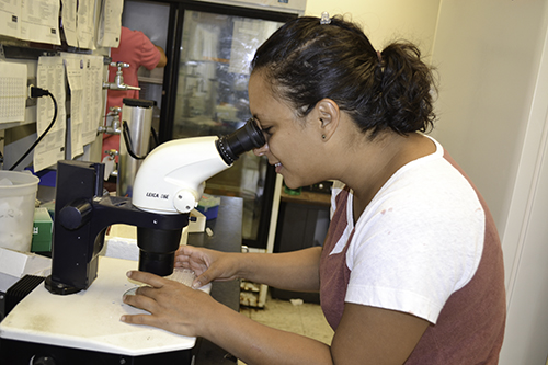 Once in college, intending a career in forensics, Estrada quickly figured out that she enjoyed the science behind forensics rather than forensics itself. “I didn't realize how much science it was going to be actually,” Estrada comments regarding her chosen major. “I thought it was going to be a little science, but mostly maybe a law type thing. Once I started doing it, turns out that it's a lot of science; it was all science pretty much.”
