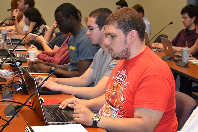 One Blue Waters intern, Jorge Lacomatura, a junior from Rensselaer Polytechnic Institute, is majoring in physics, specifically computational and theoretical biophysics. He explains that attending the Institute was important because he intends to use supercomputers in his career: “I concentrate on the study of protein folding, and protein folding uses molecular dynamic simulations which need high-powered computing to actually perform and obtain data, so if I don’t have a supercomputer, I don’t have a job.”
