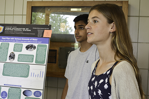 Two Uni High students present their research project about heat pipes as part of David Bergandine's POETS RET curriculum module development.