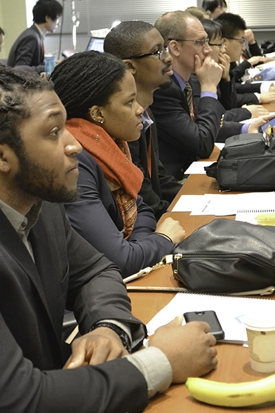 POETS graduate students attend a workshop on outreach during the 2017 NSF site visit.T-Shaped Engineers. One of PI Andrew Alleyne’s goals for POETS is to produce T-shaped engineers who are comfortable in an interdisciplinary environment. They would have depth in one area (“You go to grad school to gain some depth and become an expert in a particular area,” Alleyne acknowledges). But he also envisions students with breadth—”experts, but…relatively broader than the average engineer.”