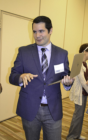 Adam Cstaneda presents his research at the Illinois Summer Research Symposium. For instance, additional time to work with his mentors was what motivated Adam Castaneda, a senior in Mechanical Science and Engineering (MechSE) at Illinois to participate in the POETS REU.