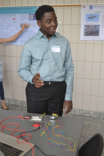 For Darius Jackson, a junior at Centennial High, last summer was also his second summer in the program. The first summer he was in the lab of POETS PI Andrew Alleyne. The second summer he worked with Andy Yoon in Kiruba Haran’s lab. In fact, he enjoyed that experience so much that he actually continued working with them on the project throughout the school year. Not only that, Jackson loves research so much that he’ll actually be participating for his third summer in a row in yet another lab during summer 2019.