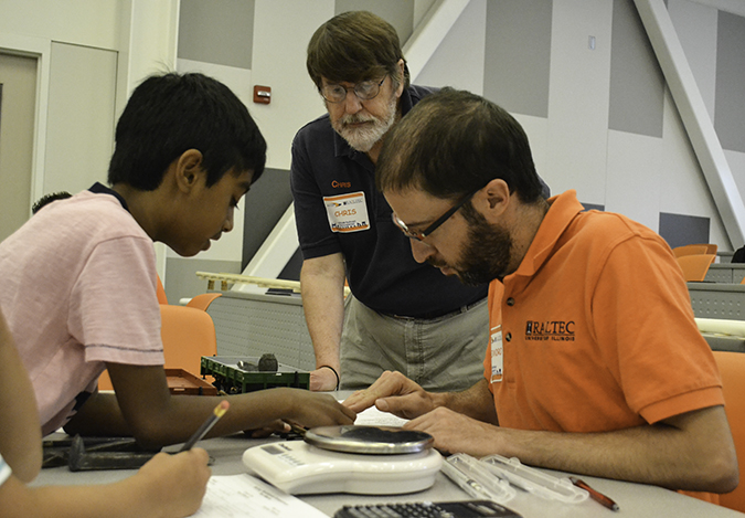 Chris Barkan, a Professor in Civil and Environmental Engineering, is passionate about trains. He knows about railroad technology and history—both in America and elsewhere in the world. Here at Illinois, he leads RailTEC, the Rail Transportation and Engineering Center, a world-class railroad research and educational program studying ways to make trains safer, faster, and more efficient— environmentally, economically, and energy-wise. Barkan is also devoted to educating the next generation of railway engineering professionals. And to make sure that railroads (and RailTEC) have a steady supply of bright young students, he, along with his colleague, Tyler Dick, and their rail engineering students teamed up with Angela Nelson at Next Generation School's STEAM Studio to organize and host STEAMvention 2016, where they used the fascinating and fun aspects of railroads to attract youngsters to a journey on the STEM pipeline.