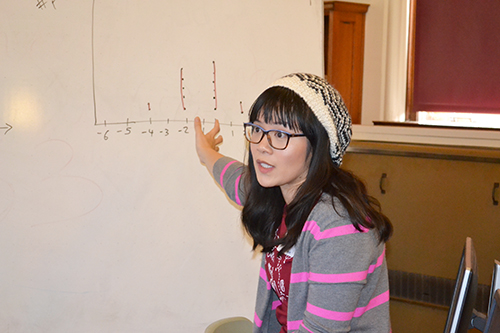 Second year math PhD student Chi Huynh explains the "random walk" activity graph.Although she struggled to obtain a formal education, facing negative attitudes about women attending universities and lacking a support system throughout her life, she became the first woman to receive a doctoral degree from a modern university. Plus, she gained tenure at Sweden’s Stockholm University, where she was also named editor of a math journal. During her career, Sonya published 10 papers in mathematics and mathematical physics.