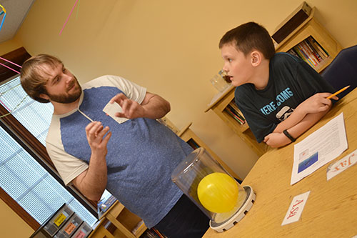 But it wasn’t just the younger students who benefitted from the encounters; Haddock indicates that the interaction between grad students and youngsters goes both ways: “As a graduate student, it’s very refreshing to answer the creative questions asked as they wonder at the science of the demos. I usually have forgotten when and where I learned principles like vacuum, so to see the learning process and inquisition of the students firsthand is exciting.”