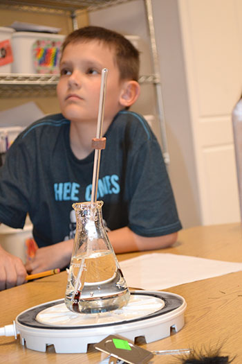 The final experiment involved boiling water. Can water boil with no heat applied? The students first learned the definition of boiling, which might be a bit different than one expects: It’s when liquid turns into a vapor.