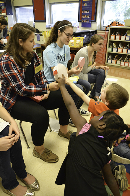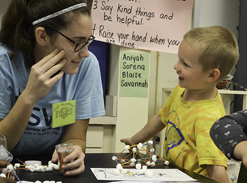 Flasch explains that SWE’s small events allow them to reach students whose parents aren’t intentionally seeking to foster their child’s interest in engineering. Another benefit? Kids in a classroom are virtually a “captive audience.”