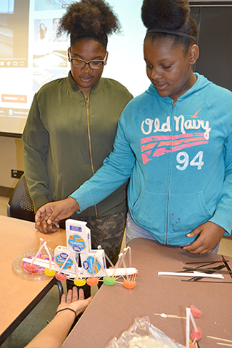 Also pretty much sold on engineering was Simone Gilbert, a 7th grader at Urbana Middle School. Gilbert, who has done two other SWE activities, came to Round Robin "to learn more about engineering." The seventh grader thought the activities were fun and has decided that she wants to be an engineer, preferably in civil engineering.