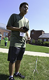 Amidst cheering, laughter, and lots of little trash talking, the 27 Urbana High School (UHS) student athletes at I-STEM’s first-ever, multidisciplinary summer camp were attempting to launch (some successfully, some not so successfully) the balsa wood gliders and model rockets they had built. It was Aerospace Day on Monday, August 14. Students had learned some of the engineering and physics behind how airplanes and rockets fly: via several brief lectures, demonstrations, and tours and lots of hands-on activities, the students had learned about flight mechanics and jet engines, the basics of rocketry, and experienced the wind tunnel how the aerodynamics of various shapes are tested. Then, after designing and building their masterpieces, came the high point of the day—a chance to attempt to launch their aircraft.