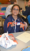 As part of I-MRSEC’s Cena y Ciencias (Spanish for “Supper and Science”) outreach program, a group of mostly Hispanic K–5 students and their families followed a supper of free pizza at Urbana’s Dr. Preston Williams Elementary School with a visit to the Materials Research Lab (MRL) for the second and equally-as-fun part of the evening—some science. During the April 1st event, the visitors not only participated in a variety of materials-related, hands-on activities, but they also got to interact with Illinois students and staff. Also, since many of those presenting were Hispanic and were leading the activities in Spanish, the youngsters also got to see scientists who look like them and who speak their language.