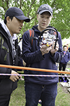 There was a lot riding on the 36 little robots navigating the ropes stretched across Boneyard Creek for ME 370's final competition. Held just north of the Engineering Building at noon on Wednesday, May 3rd, the contest drew a crowd of interested spectators who vicariously experienced the little robots' ups and downs, "oohing" and "ahing" during the spectacle. For the students, the contest not only motivated them to show off their engineering prowess; it got their competitive juices flowing as they sought to beat the socks off their opponents. And as an added incentive, teams whose robots beat the time set by Professor Socie's robot got to skip the upcoming final exam.