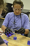 From wacky wires (memory metal) that reshape themselves when immersed in boiling water, to playing with ooy-gooey non-Newtonian fluids, to molding polymers, the 19 high school girls who participated in GLAM (Girls Learn About Materials) GAMES camp from Sunday, June 18th through Saturday, June 24th this past summer learned about a variety of materials. After hearing a mini-lecture about a given material, the girls then got to do fun, hands-on activities about the subject. Many of the participants, who were exploring materials science in order to make college/career decisions, not only learned some things about materials and what materials engineers do, they were exposed to women in materials engineering who served as role models.