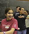 And that’s what the folks from Illinois’ math department did when 27 Urbana High School (UHS) athletes, mostly underrepresented minorities, participated in Math Day as part of the first-ever I-STEM Summer Camp. “This is math?” is a question that cropped up while, grinning from ear to ear, they raced against time to stop the spread of an epidemic on the VAX website, or wrestled with a challenging combinatorics activity, or struggled to get their mind around mathematical logic as Philip Hieronymi presented some virtually unsolvable brain teasers. So while participating in a variety of challenging, hands-on activities that showed them that math is useful in real-life situations and can be quite different from what they learn in school, they also learned to think outside the box where math is concerned and discovered that math can be fun.