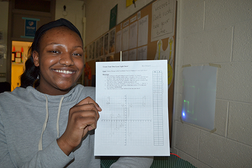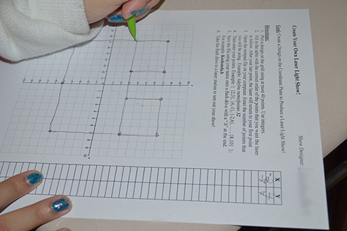 In addition to seeing “how math can be used as a tool to create an interesting ‘laser show’ of their design,” Poetzel reports that in this lesson, students were able to “apply their knowledge of the Cartesian Plane to control the path of the laser.” Plus, students were not only able to “design their own paths,” but Poetzel adds that the lesson also had “a nice problem-solving component to figure out the least number of points needed to guide the laser through their designed path.”