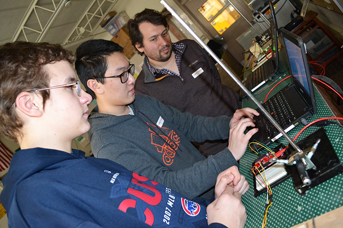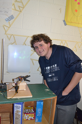 To further develop Roach’s original laser light show project as an outreach activity, Muskin decided to make coordinate math the focus of the activity, making it age appropriate for use in a middle school setting. So Joe brought Centennial senior Edward Lu into the project. Working with Muskin and van der Zande, Lu wrote a program that enables Roach’s system to trace the path defined by ordered pairs.