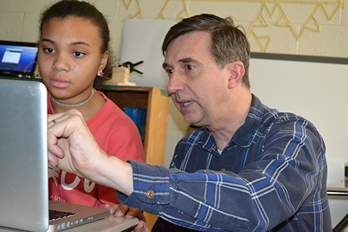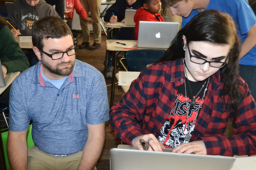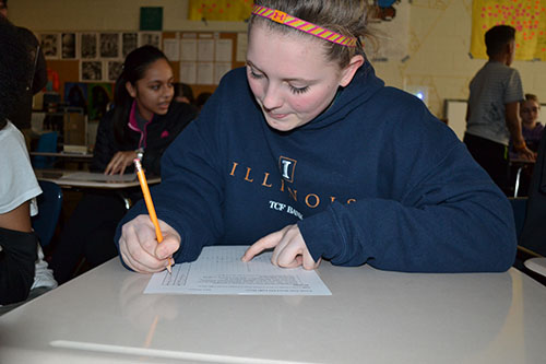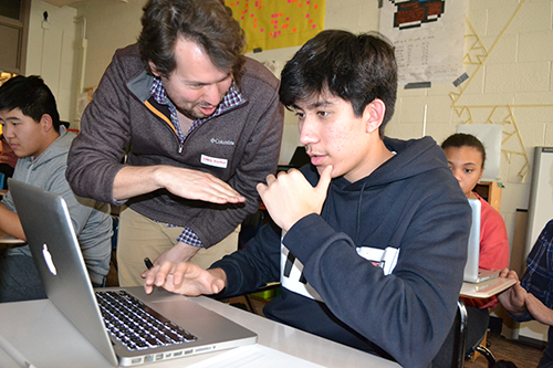 In addition, because Poetzel maintains strong ties with local schools, he was also in charge of recruiting a teacher and some students to serve as guinea pigs to try out the newly developed lesson plan. So Poetzel reached out to Urbana Middle School teacher Jason Pound, who regularly mentors Poetzel’s math pre-service students and has contributed many times to C&I’s math teacher education program. Pound agreed to pilot the activity with a couple of his eighth grade classes.