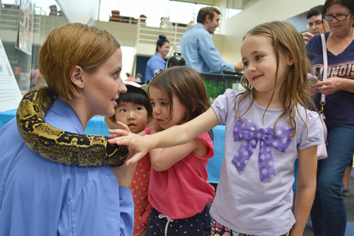 Third year Vet Med student Megan Gramhofer was on hand to communicate with the public regarding a species she’s particularly passionate about…snakes. As part of her show and tell, she brought a friend, Ciara the Snake, a red-tailed boa constrictor, for the more intrepid to touch or even pet.