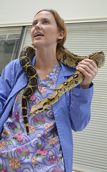 Regarding most folks' (including this reporter's) fear of snakes, she acknowledges that, “It's hard not to be scared of snakes when our culture portrays them in such scary way with movies.” Her advice to help folks deal with their fears is to find out more about them. “I think my biggest pointer is to ask questions,” she advises. “If you know someone who has a pet snake, ask them about it. There are books on why snakes are important to the environment. Education is the most powerful tool.