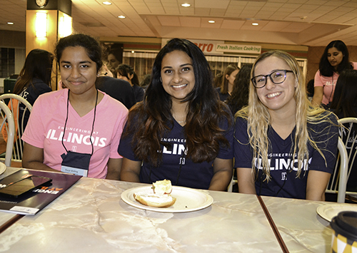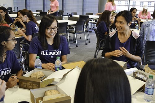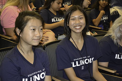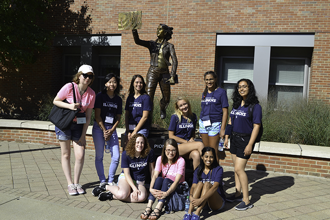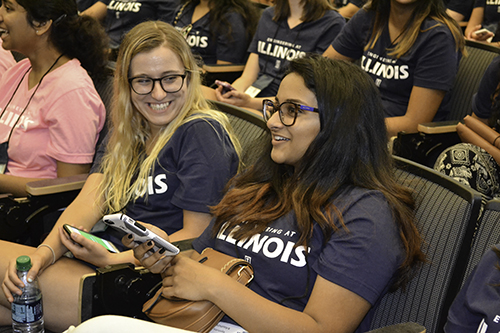 The “WIE by the Numbers” slide presented during the introductory session of WIE (Women in Engineering) Orientation, from August 22–24, 2017, says it all. Since its inception 15 years ago, 2,724 female freshman engineering students have participated in Orientation, with 268 students from the fall 2017 freshman class attending. Another impressive number? The 268 women attending Orientation were a just bit more than half of the total number of female engineering students in the fall 2017 clas. This represents the largest number (496) and percentage (25%) of women ever in a freshman engineering class at Illinois—a milestone for Women in Engineering and a cause for celebration. And celebrate they did, as they arrived on campus a few days ahead of all-campus-move-in day, eager to get a head start—to get familiar with campus, make friends and build a community, and to receive sage advice from some older and wiser women in engineering.