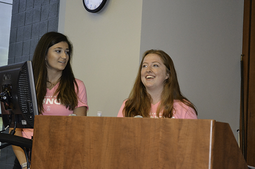 The WIE Orientation planning committee included Angie Wolters, Director of Women in Engineering; Brooke Newell, WIE Program Coordinator and Academic Advisor; Co-Student Coordinators Siobhan Fox and Elizabeth Sanders; and WIE Administrative Assistant, Amy Cain. The team not only kept Orientation running smoothly, but during the introductory session, they shared the agenda and introduced the various speakers, but they also gave some advice to the freshmen.