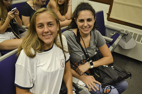 In a kind of “afterglow” event, although Orientation officially ended at 1:15 pm on Thursday, mentors led some optional, informal afternoon activities, such as showing girls where their classes would be, so on the first day of classes, they wouldn’t be “scrambling around,” Fox explains. Some mentors took girls to the bookstore so they could give them advice when purchasing textbooks. Others took girls shopping for dorm room stuff or emergency items. Some mentors introduced girls to the bus system so they could learn firsthand how the buses work, which can be intimidating.