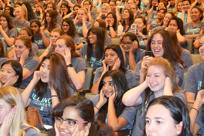 Up from the 262 participants last year, the 275 attendees were part of the largest group of incoming female engineering students ever to enroll at Illinois: 25% of the freshman class. Helping to make the event possible were the sponsors: Texas Instruments (TI), Abbott, Caterpillar, and Brian and Sophie Leung.