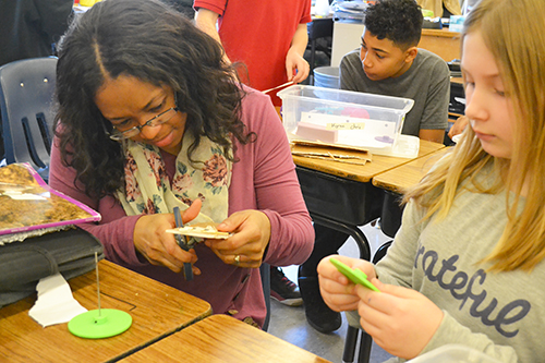 Tutwiler shares one of the benefits of bringing university people into her classroom: “More ideas!” she exclaims. “This gives me a chance to think if we can do it next year maybe, or some type of adaption of it. Plus, I've learned more.” One of the things she herself learned about was using blackberries to fuel a solar cell, along with trying to “figure out how to get that motor running—I didn't know about that either. So I'm learning too!”