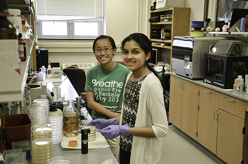 Lee also reports that Hebbar has been an asset to the lab. “As an experimental biophysics lab, we carry out procedures that are very hands-on and can be learned fairly easily. I show Neha how to do an experiment and then have her carry it out, so a lot of the progress on my project actually has been made by her.”